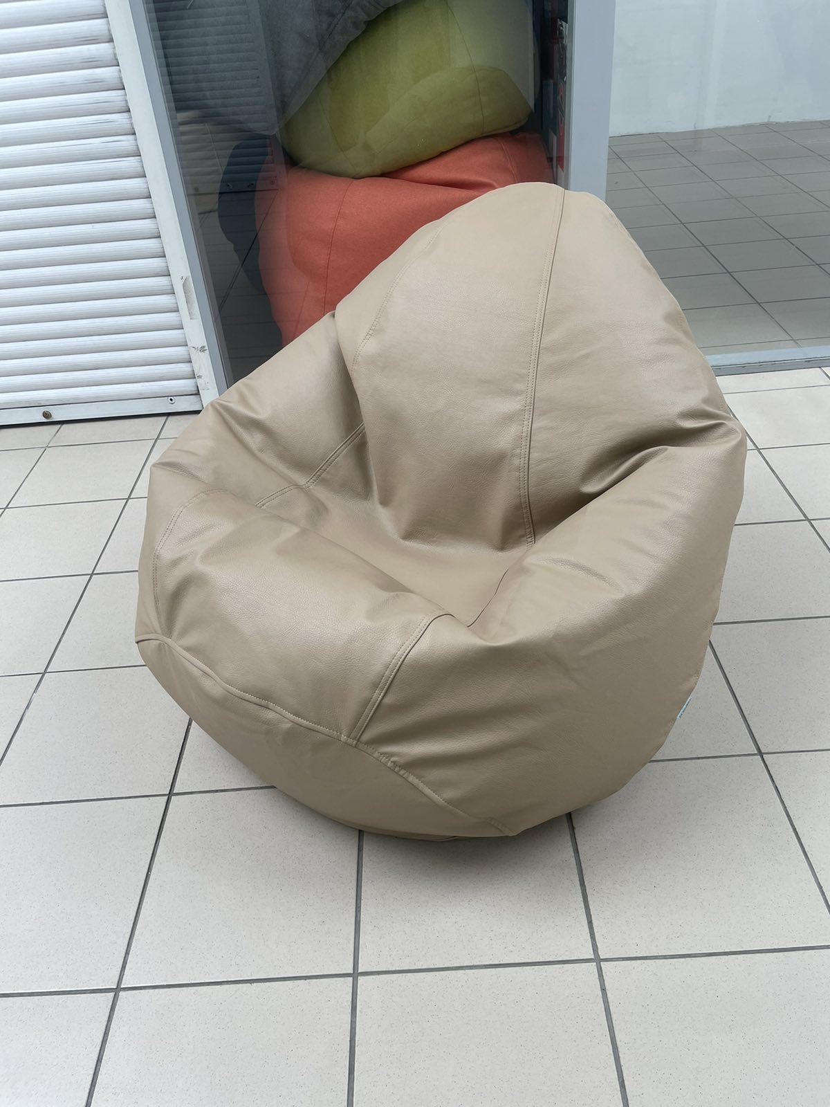 В качестве материала для верхнего чехла используется экокожа. Это практичный, износостойкий и красивый материал, который делает внешний вид кресло-мешков ещё более привлекательным. Его очень сложно порвать или повредить. Он весьма эластичен и не требует специального ухода.